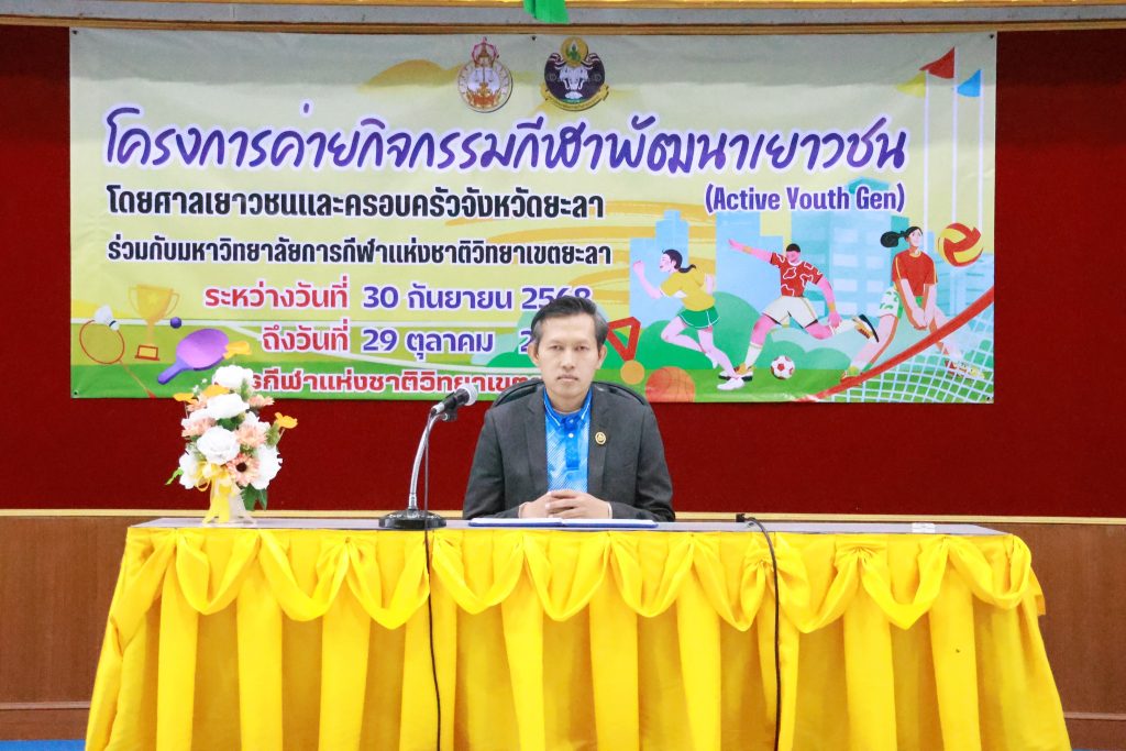 วันที่ 30 กันยายน 2568 มหาวิทยาลัยการกีฬาแห่งชาติ วิทยาเขตยะลา ร่วมกับศาลเยาวชนและครอบครัวจังหวัดยะลา ดำเนินโครงการค่ายกิจกรรมกีฬาพัฒนาเยาวชน ระหว่างวันที่ 30 กันยายน 2568 ถึงวันที่ 29 ตุลาคม 2568 โดยได้รับเกียรติจากนายศุภชัย ฟูจิตร์ ผู้พิพากษาหัวหน้าศาลเยาวชนและครอบครัวจังหวัดยะลา เป็นประธานในพิธีเปิดโครงการ ณ ห้องประชุมศรียะลา ชั้น 2 อาคารเฉลิมพระเกียรติ 6 รอบ พระชนมพรรษา มหาวิทยาลัยการกีฬาแห่งชาติ วิทยาเขตยะลา